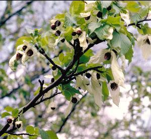 = Zeldzame boom tot 8 meter met witte, zakdoekvormige bloemen.