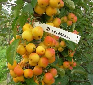 = Kleine boom tot 5 meter met witroze bloei en gele vruchten tot 25 mm groot.