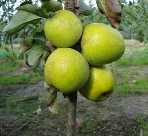 Citroengeel appeltje met ananassmaak, rijp in oktober en bewaart tot maart. Is zeer vruchtbaar! Groeit traag en is ideaal voor kleine tuinen.