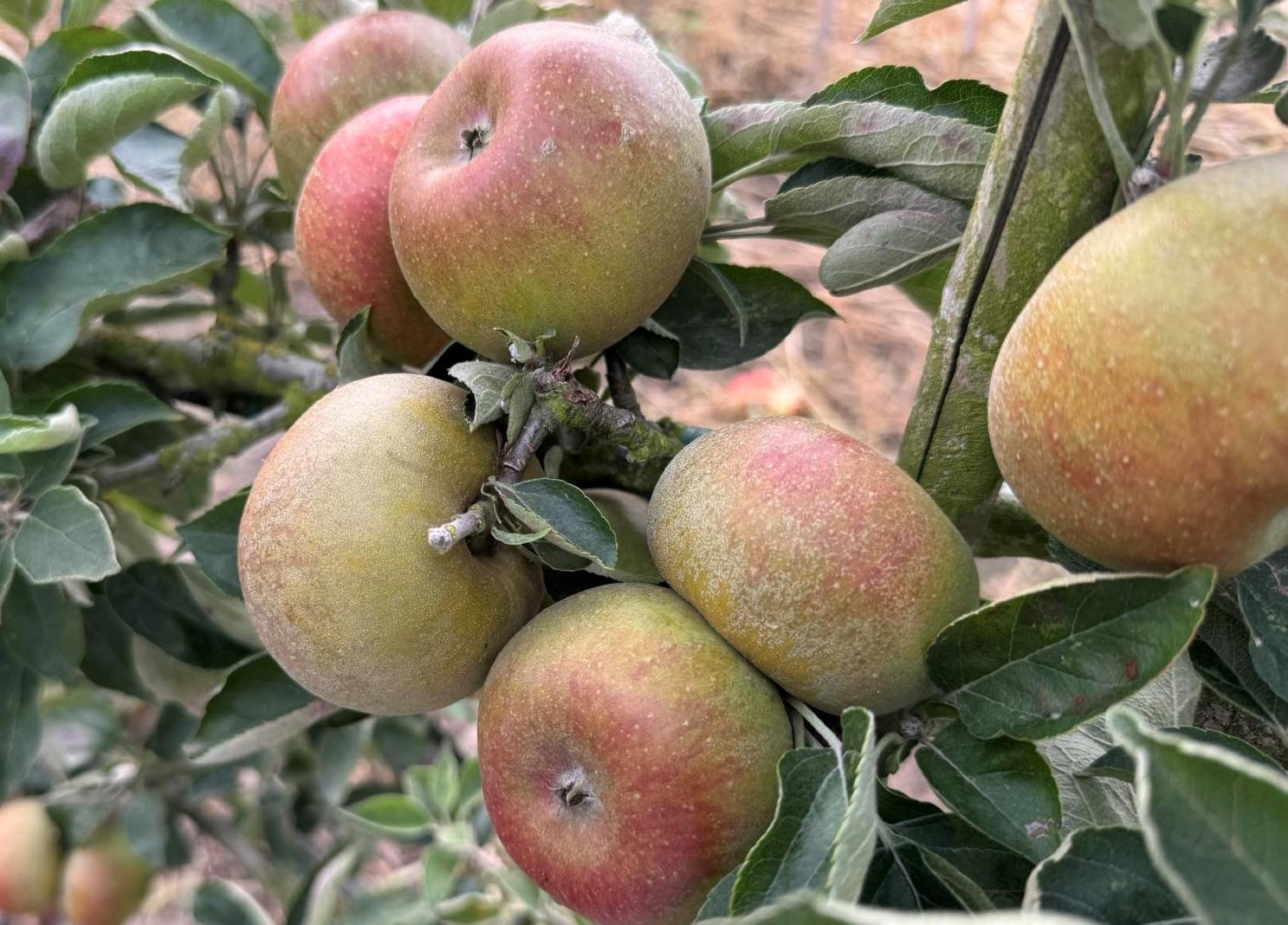 Kleine dessertappel met geelroze schil. Rijp in oktober, bewaart tot maart.
