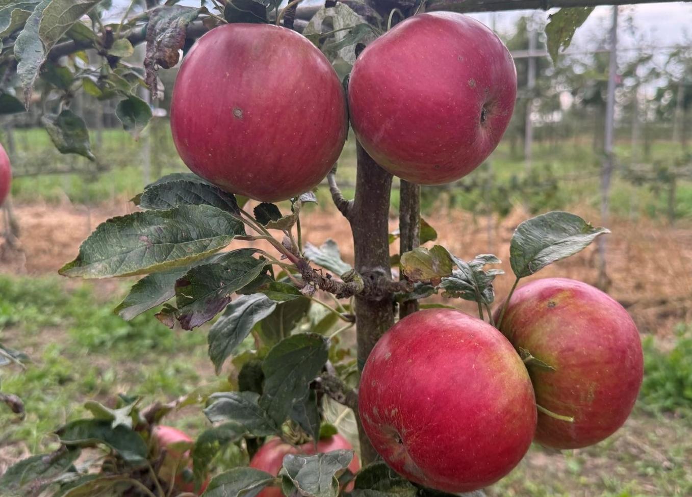 Grote groenrode tafelappel met matig zoete smaak, rijp in oktober en bewaart tot maart.