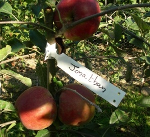 Rode eetappel met vast vruchtvlees, rijp in oktober en bewaart tot maart.