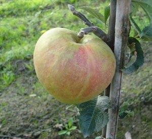 Grote bronskleurige appel met zoetzure smaak, rijp in oktober en bewaart tot februari.