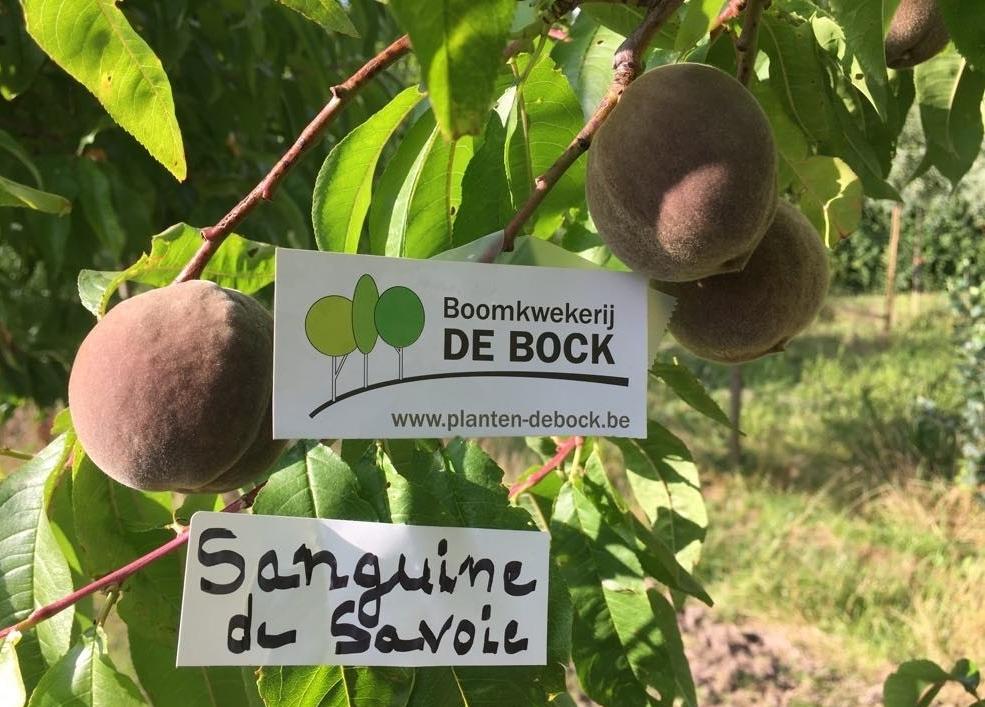= Bloedperzik of Grijze muizen. Ras met rood vruchtvlees tot op de steen! Rijp rond 15 september, is 3 weken bewaarbaar. Zoete smaak, goed voor compote.