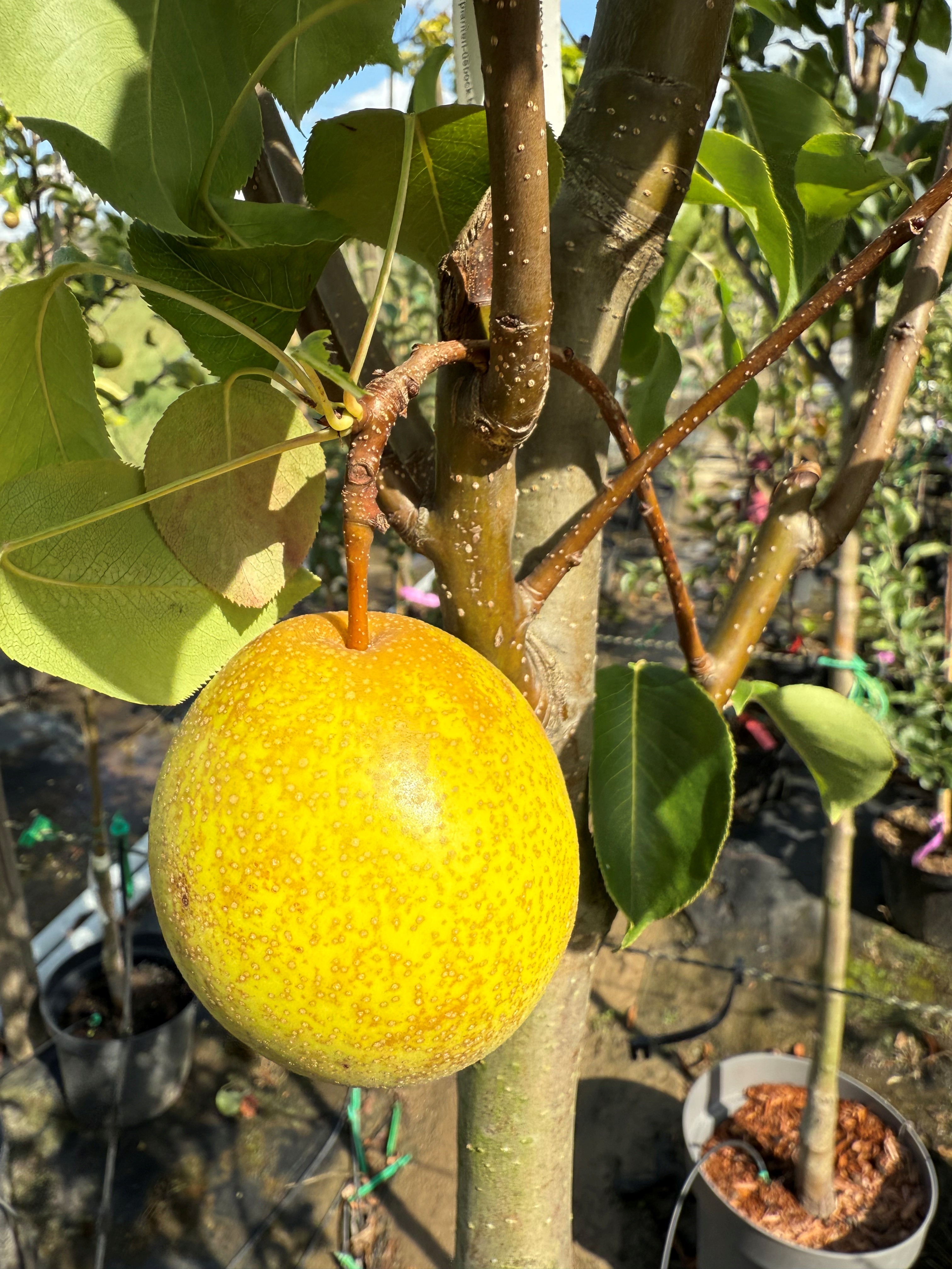 Aziatische peer, qua vorm lijkend op een kruising tussen appel en peer, rijp half augustus. De smaak is een mengeling van peer en de exotische litchi. Ziekteresistente soort. Is niet zelfbestuivend.