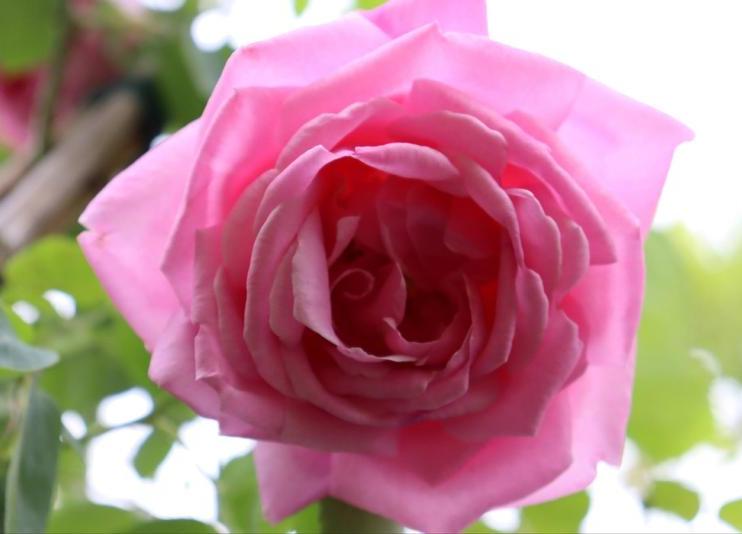 Theehybride klimroos tot 4m met dubbele grote roze bloemen