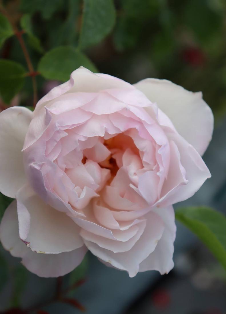Heesterroos met sterk geurende, lichtroze goedgevulde grote bloemen (ook als klimroos te gebruiken)