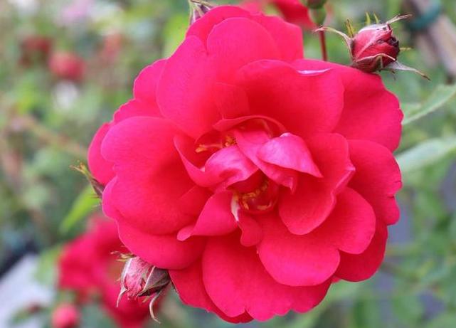 Klimroos tot 3m met helderrode bloemen, lichtgeurend