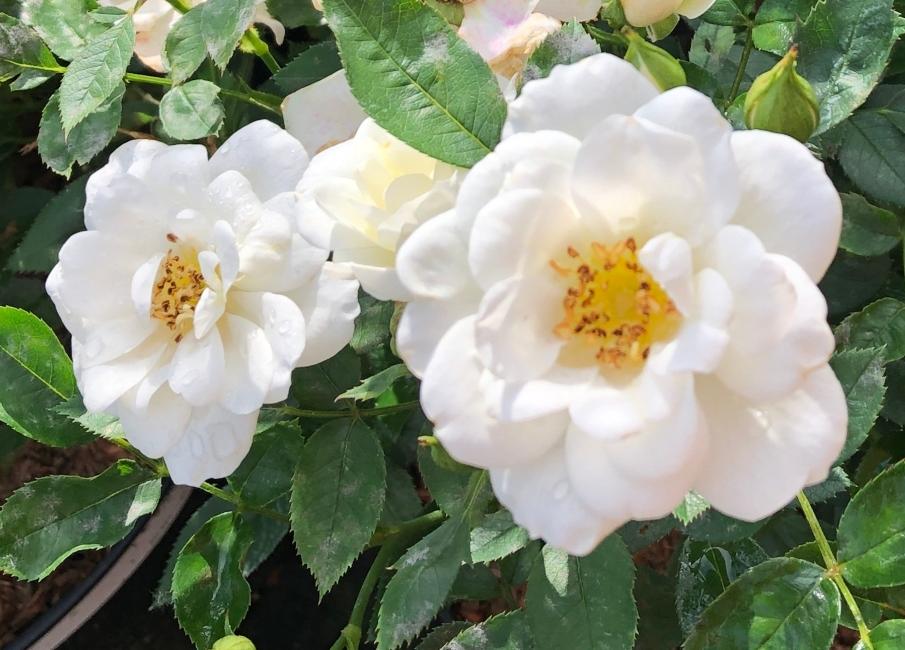 Bodembedekkende roos tot 60 cm met witte bloemen.