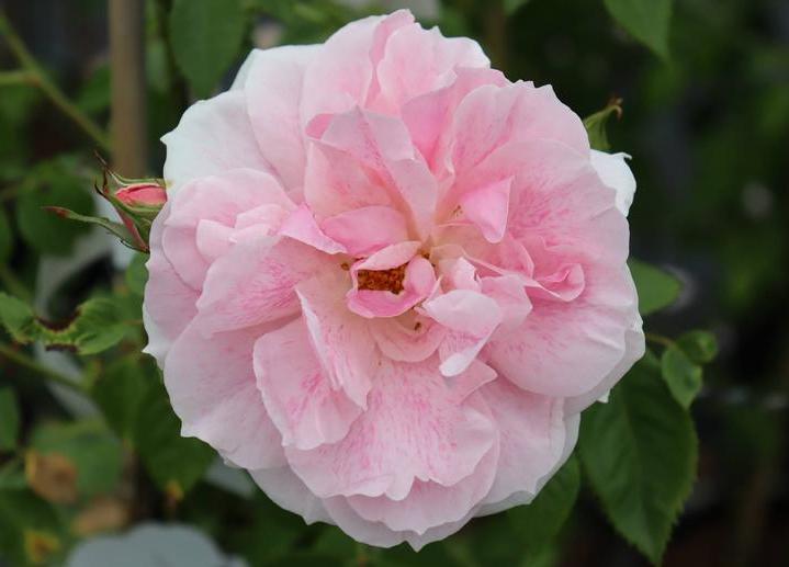 Doorbloeiende klimroos tot 3 meter met geurende lichtroze bloemen.