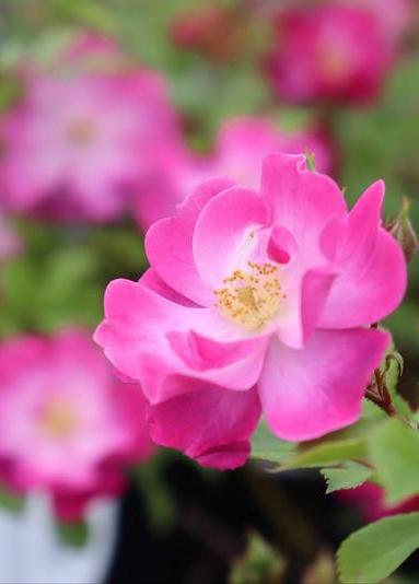 Bodembedekkende roos met lavendelkleurige bloemen.