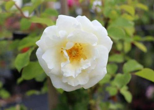 Klimroos met trossen crèmewitte supergeurende dubbele bloemen