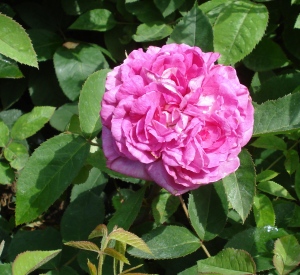 Doorbloeiende heesterroos tot 150 cm met purperviolette bloemen.