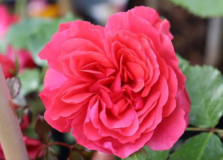 Grootbloemige, doorbloeiende klimroos tot 200 cm met donkerroze bloemen.