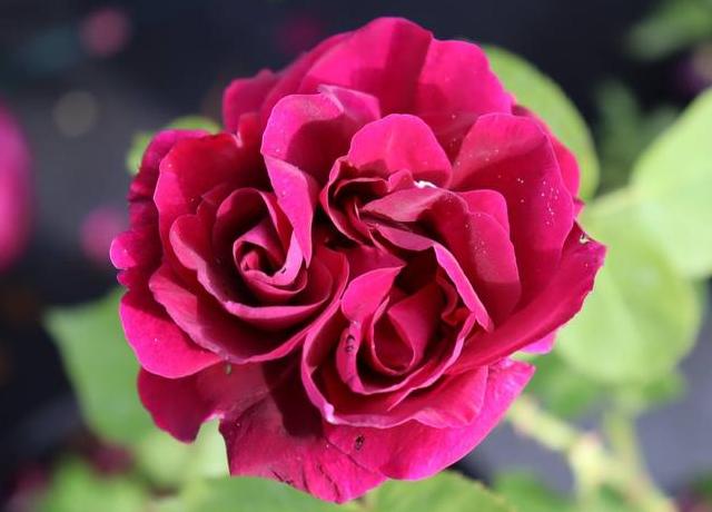 Portlandroos tot 1m met gevulde karmijnrode geurende bloemen