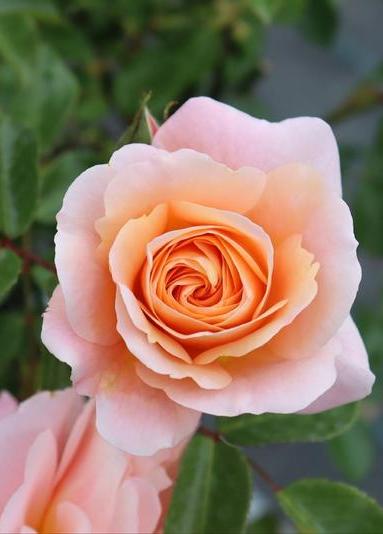 Zacht abrikooskleurige trosroos met sterke grote gevulde bloemen