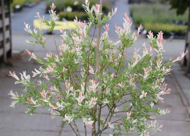 Sierlijk boompje voor borders en kuipen, blad rose, wit en groen gemarmerd.