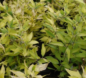 Bossige groene bamboe tot 100 cm hoog, licht woekerend.
