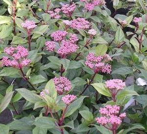 Sneeuwbal. Groenblijvend. Wordt ca 150 cm hoog. Bloei:witroze (vanaf oktober tot april)