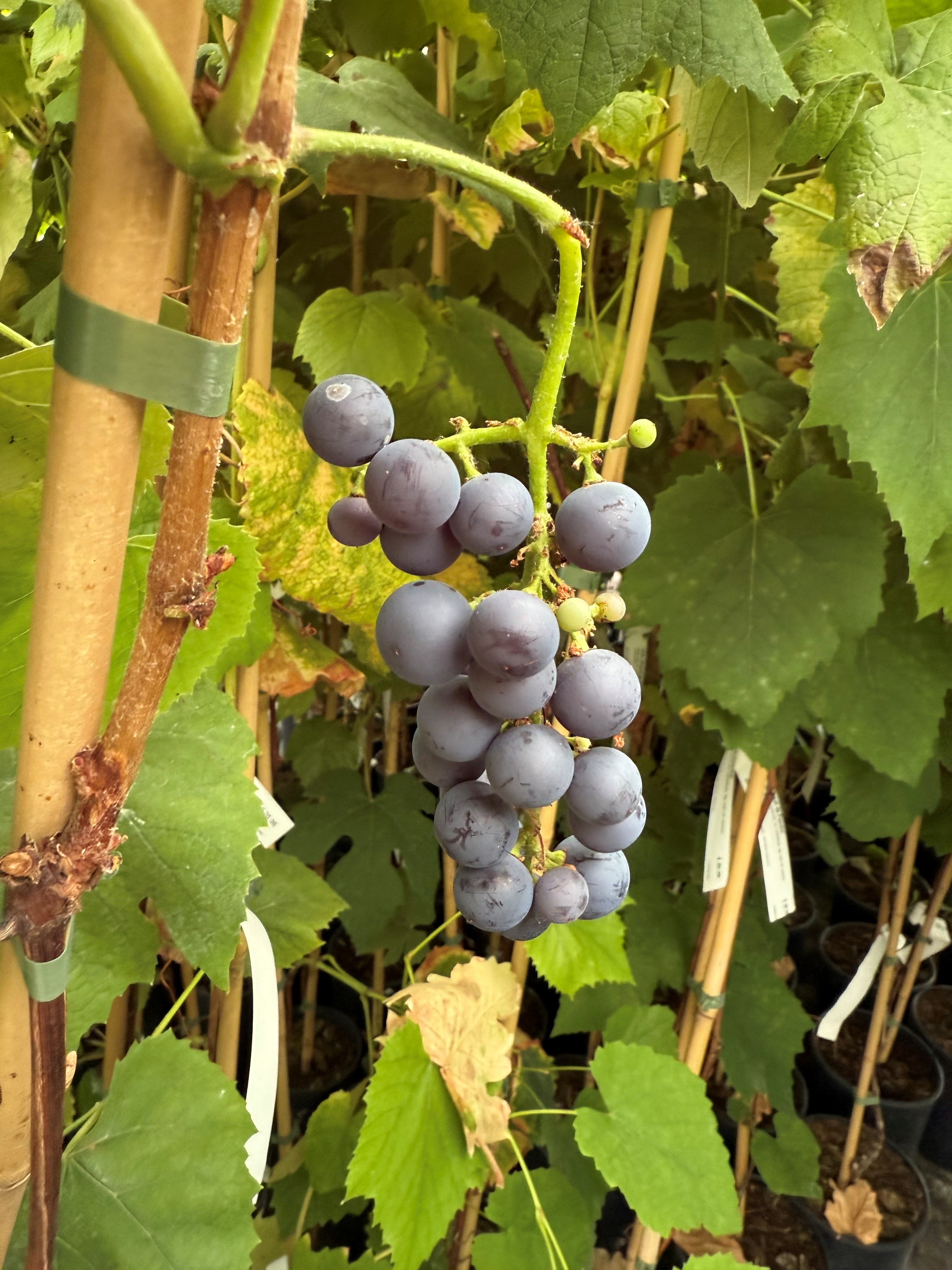 blauwe druif voor de buitenteelt met muskaatsmaak. Rijp vanaf half september. Ziekteresistent!